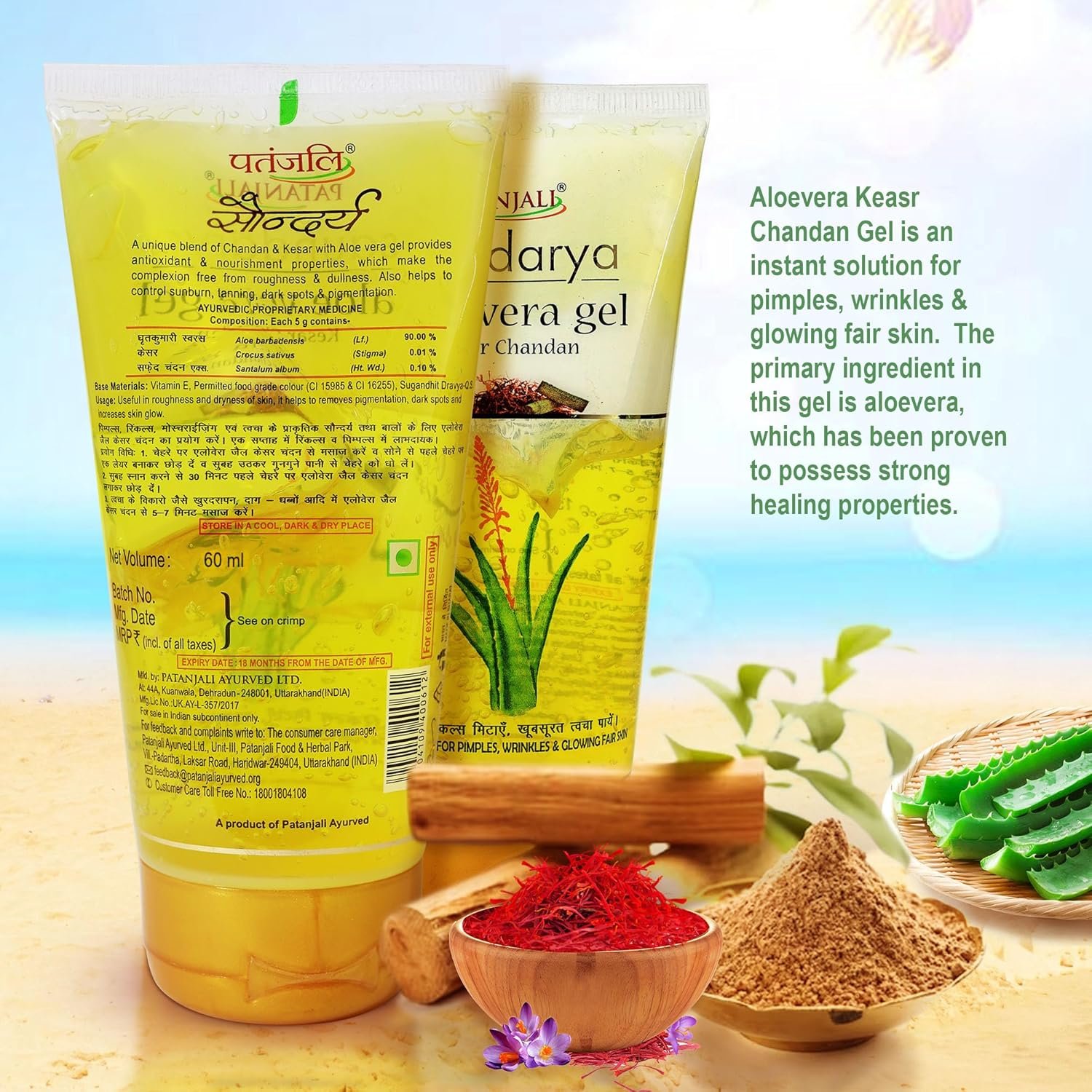 Patanjali Saundarya Aloe Vera Kesar Chandan is infused with a blend of traditional ingredients known for their proven benefits: