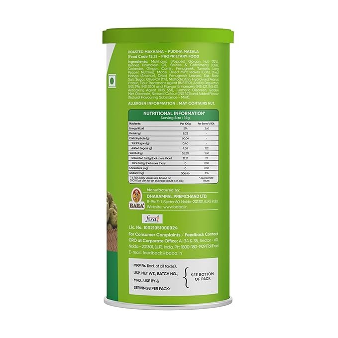 Available in a convenient 53gm pack, Snacks Factory Makhana Pudina Masala is perfect for munching on during mid-day cravings, travel, or as an accompaniment to your favorite beverage. Its lightweight packaging makes it easy to carry, ensuring freshness every time you reach in for a handful. Whether you’re looking for a quick energy boost or an indulgent treat for movie nights, this snack ticks all the boxes.