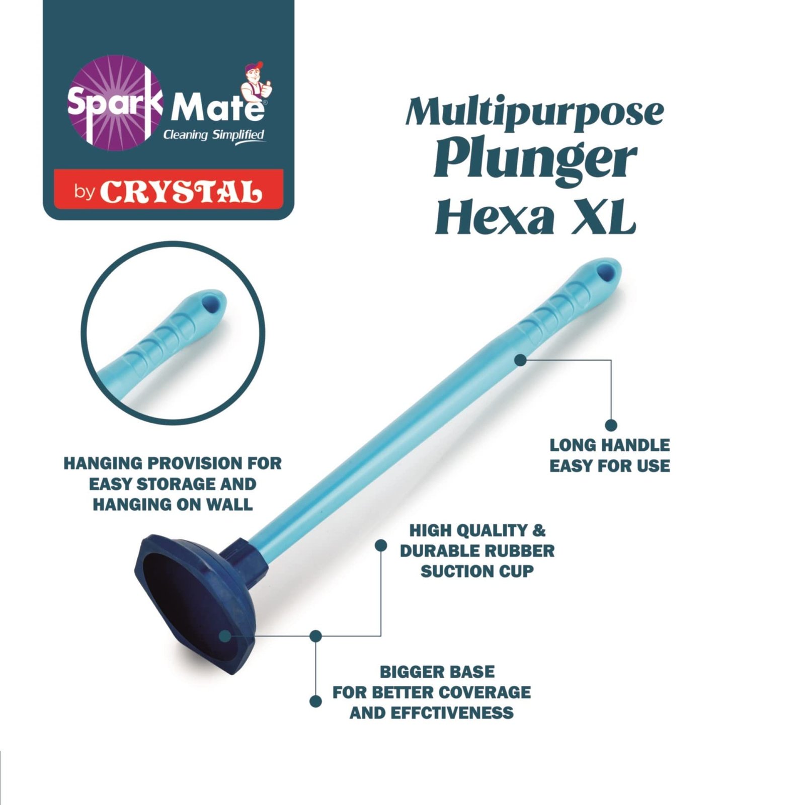 Crafted with practicality and durability in mind, the Spark Mate Multipurpose Plunger is made from premium, eco-friendly materials that withstand rigorous usage without wear or tear. Its powerful suction technology ensures deep penetration into drains, thoroughly dislodging debris and grease buildup. The adjustable grip handle offers a comfortable and secure hold, so you can tackle even the toughest clogs with minimal effort. Whether you’re dealing with slow drains or complete backups, the Spark Mate guarantees efficient results every time.